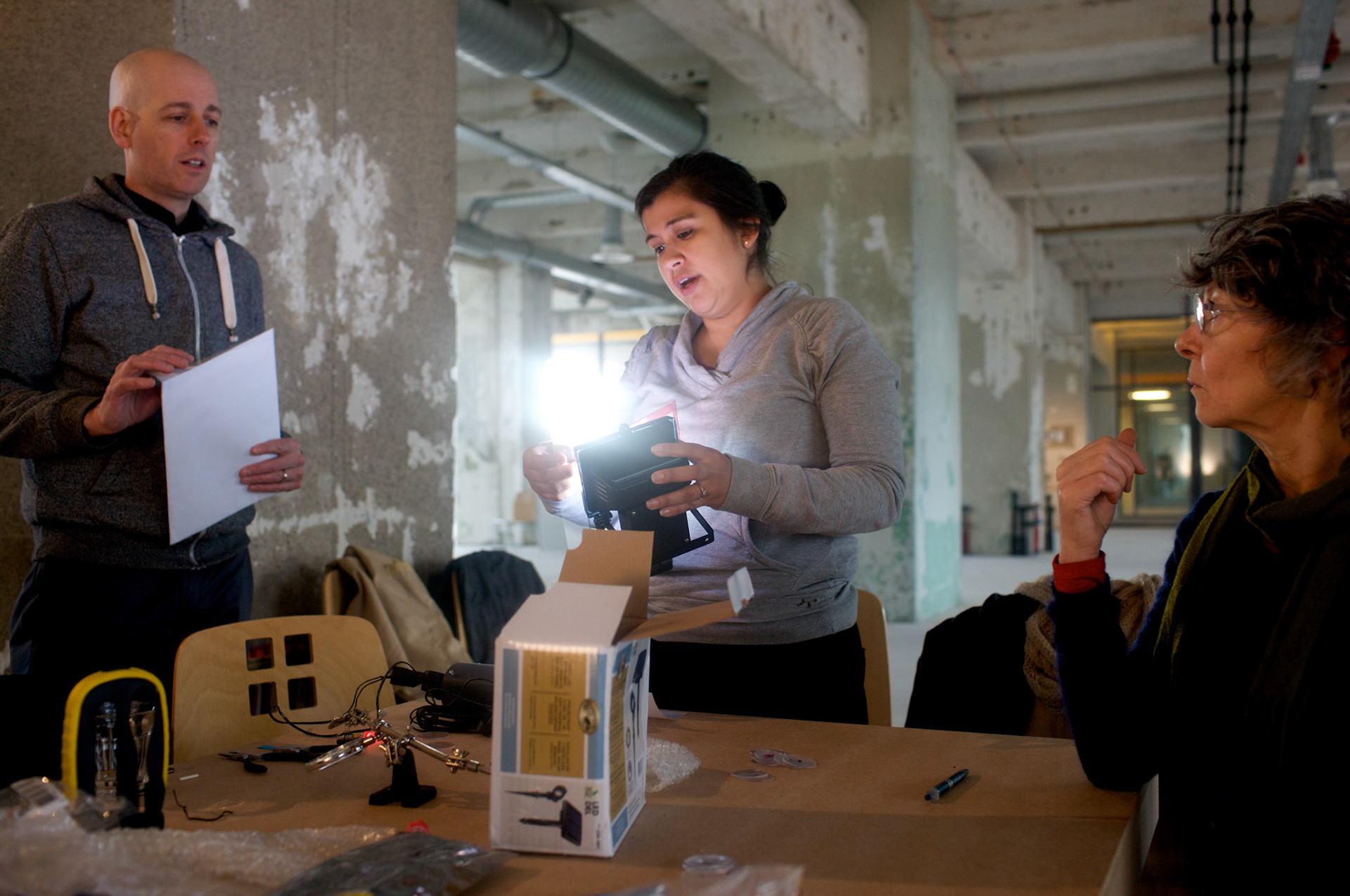 Jason Eppink and I developed the concept of solar graffiti (site-specific solar-powered installations of light and projection that explore the interplay of darkness and light, and image and text) and created solar powered projectors, solar throwies and solar light boxes. We taught a solar graffiti workshop at Baltan Labs that introduced participants to public space art and worked to transform Eindhoven into an urban laboratory for creative experimentation.